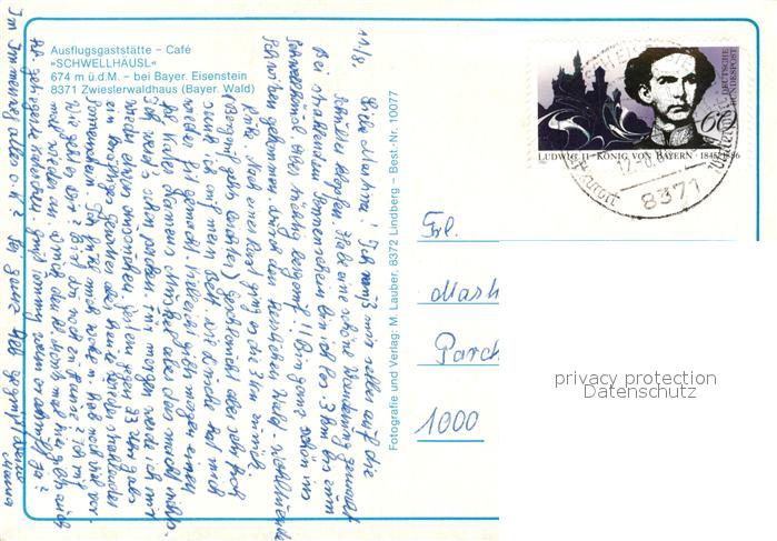 73065154 alte Postkarte Zwieslerwaldhaus Ausflugsgaststaette Cafe Schwellhaeusl Teich postalisch gelaufen Erhaltung siehe scans [FriedD77] KatCode: 11110009276130