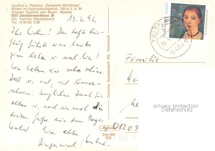 73765881 alte Postkarte Zwieslerwaldhaus Gasthof Pension Zwieseler Waldhaus postalisch gelaufen Erhaltung siehe scans [WerneD78] KatCode: 11110009276130