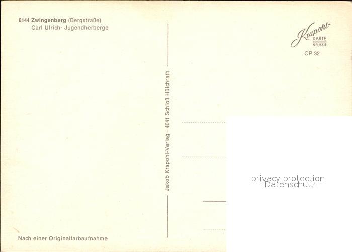 72577739 Zwingenberg Bergstrasse Car Ulrich Jugendherberge postalisch nicht gelaufen Erhaltung siehe scans [FriedD77] KatCode: 11110006431022