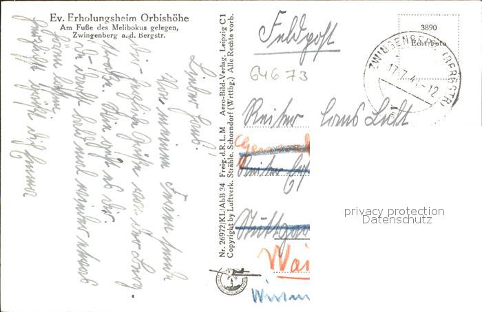 72097992 alte Postkarte Zwingenberg Bergstrasse Fliegeraufnahme postalisch gelaufen Feldpost Erhaltung siehe scans KatCode: 11110006431022
