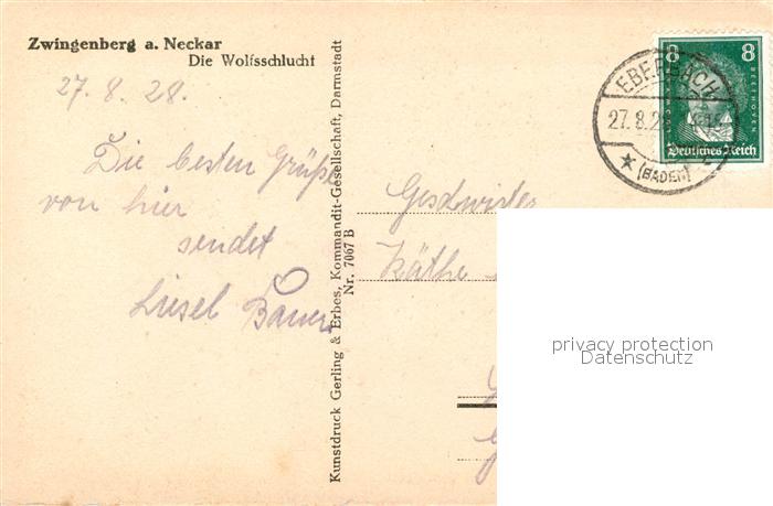 43350158 alte Postkarte Zwingenberg Neckar Die Wolfsschlucht postalisch gelaufen Erhaltung siehe scans [WerneD78] KatCode: 11110008225113