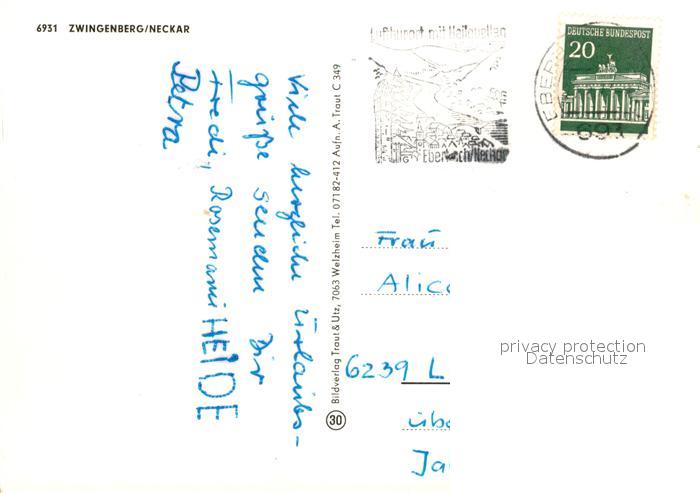 73212792 alte Postkarte Zwingenberg Neckar Partie am Neckar mit Burg postalisch gelaufen Erhaltung siehe scans [WerneD78] KatCode: 11110008225113