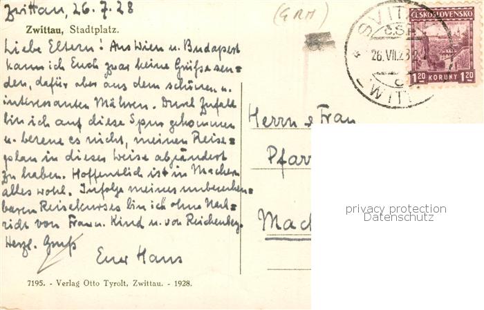 old postcard Zwittau Svitavsko CZ Stadtplatz postalisch gelaufen Erhaltung siehe scans [FriedD77]