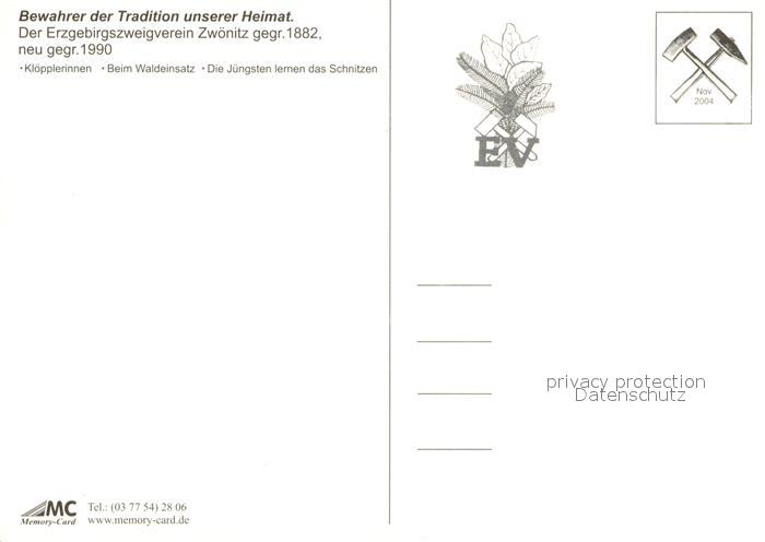 73664680 Zwoenitz Erzgebirgsverein Zwoenitz Kloepperinnen Beim Waldeinsatz Die Juengsten lernen das Schnitzen postalisch nicht gelaufen Erhaltung siehe scans [WerneD78] KatCode: 11110014188260
