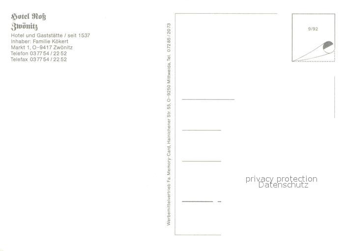 73658653 Zwoenitz Hotel Gaststaette Ross postalisch nicht gelaufen Erhaltung siehe scans [FriedD77] KatCode: 11110014188260