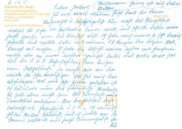 73948058 Zwoenitz Sachsen GST Ausbildungszentrum Kinderkombinat NK Krupskaja Rathaus Apotheke Hotel Ross postalisch nicht gelaufen Erhaltung siehe scans [WerneD78] KatCode: 11110014188260