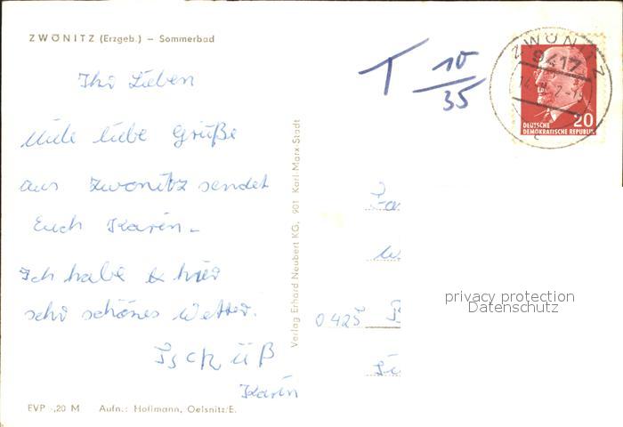 72085219 alte Postkarte Zwoenitz Schwimmbad postalisch gelaufen KatCode: 11110014188260