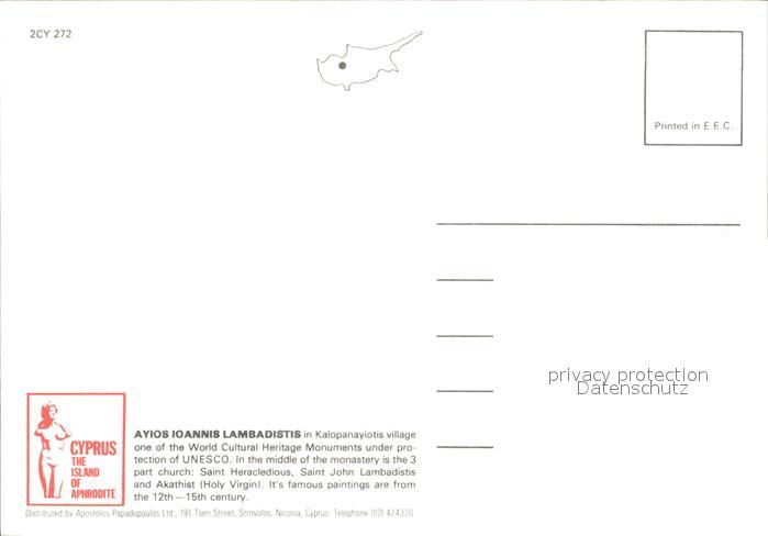 Zypern Cyprus Ayios Ioannis Lambadistis Church Kalopanayiotis postalisch nicht gelaufen Erhaltung siehe scans