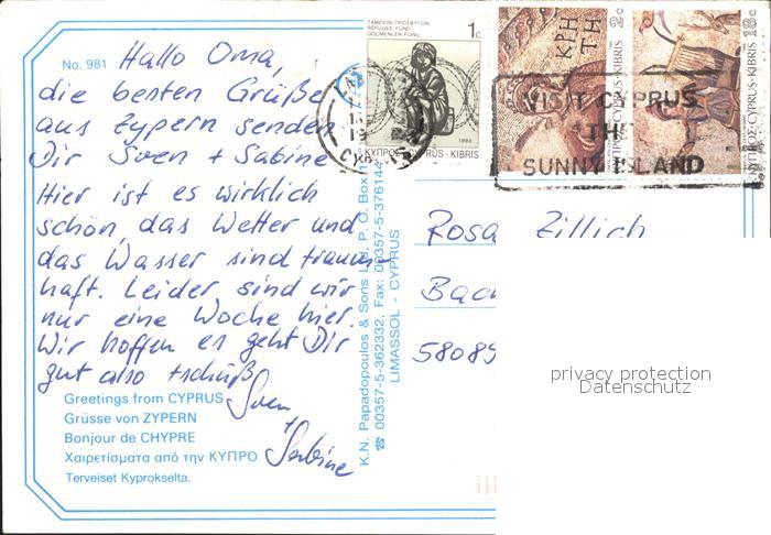 alte Postkarte Zypern Cyprus Fliegeraufnahme Weinlese Strand Haus postalisch gelaufen Erhaltung siehe scans